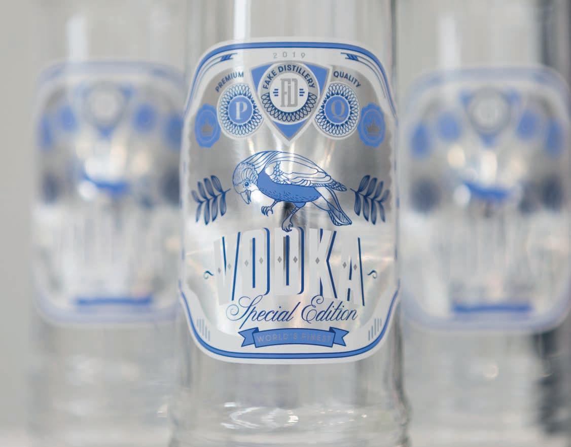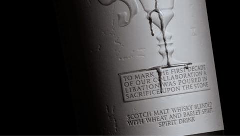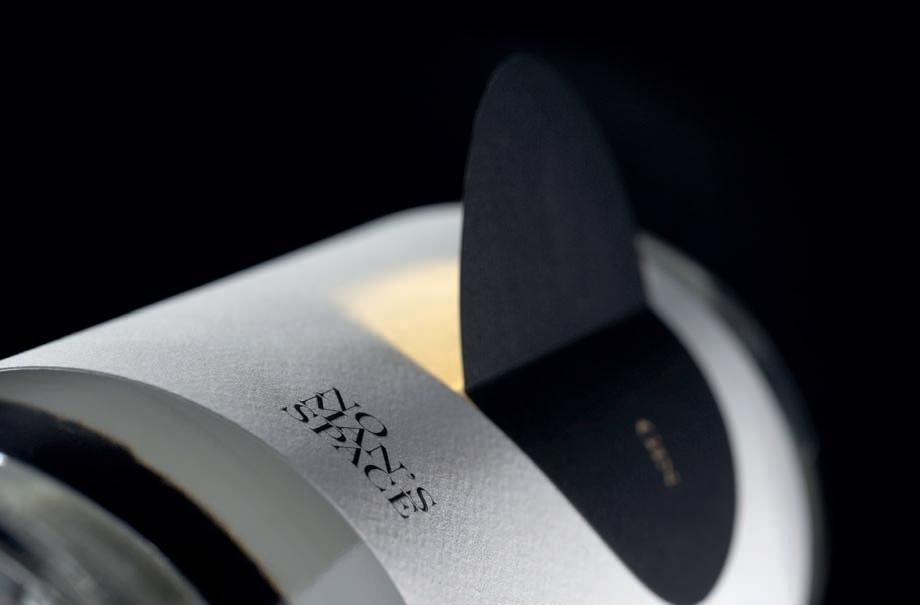 Il Gin, rappresentato con un’eclissi lunare, prende forma in una visione iconica, raffinata e ricercata, attraverso l’uso di tecniche di stampa innovative, studiate appositamente per l’automazione sia in fase di stampa che di etichettatura. La luna e la sua eclissi prendono vita, dall’etichetta all’immaginazione, attraversando i sensi. Un nuovo modo di pensare al packaging. Una forma tridimensionale che conquista lo spazio interagendo con l’utente. L’etichetta è realizzata con due carte naturali sovrapposte, nero su bianco.