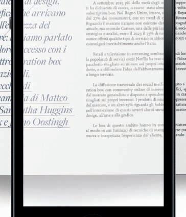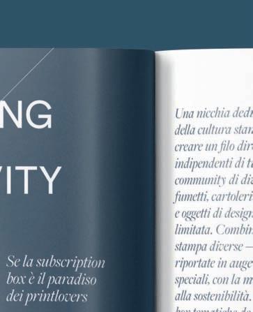 that photographs the current situation, but according to Gartner, a leading company in strategy and analysis consultancy, by 2023 75% of all business to consumer companies will offer some sort of subscription service. These changes will inevitably involve Italy as well. Retail and streaming television seem distant worlds, but it is services like Netflix that have popularized the idea of purchasing a personalised package rather than a single product, and the idea of a subscription as a long term investment. The ubiquitous presence of social media has created two-way relationships between curated boxes and online communities with specific interests, which are often not served by the general market and are willing to spend more for personalised content. Niche products represent about 20% of the market, and 15% is dedicated to hobbies and entertainment: curated boxes dedicated to design, art, and graphic arts live precisely at the intersection of these categories. Boxes in these sectors share a particular attention to the potential of various printing techniques to create a new and unexpected experience for clients. They mix ad hoc, personalised and limited edition products, with other products coming from excellent craft, independent design and organisations who work between station-