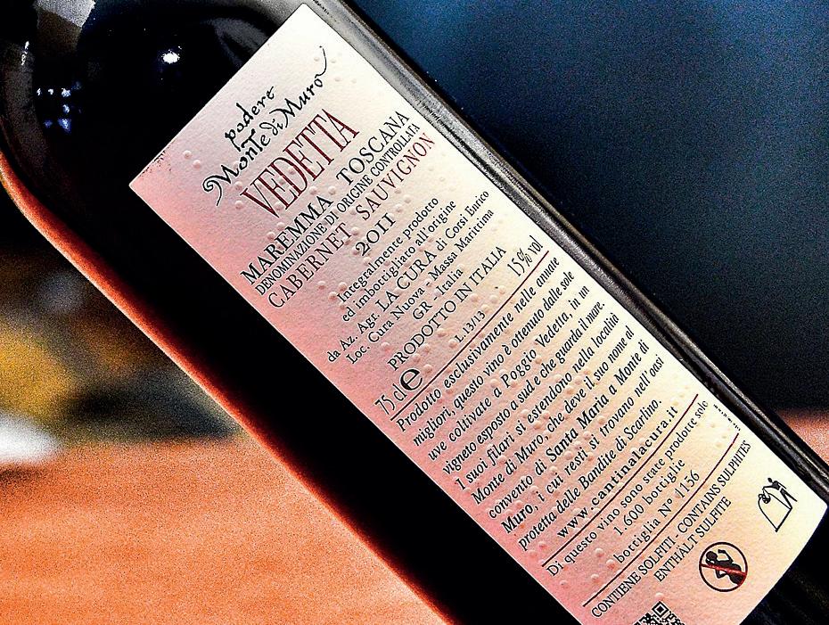 wine producer in Ortovero, in Liguria. Among others, Castrum Morisci in the Marche and Ca’ del Principe di Santo Stefano Belbo, in the heart of the Langhe, do the same. The first experience, though, was in 2010 and was carried out in Veneto by Italo Cescon Storia and Vini di Roncadelle in Ormelle. Among the label producers, we must mention Etik90, based in Piacenza and specialised in labels with screen-printing relief with braille varnishing. We must also note that often label producers use the term ‘braille relief’ to describe the relief effect achieved with varnishes or embossing.