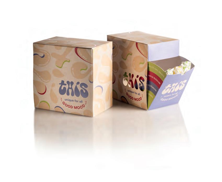 renti gusti, distinti tra di loro dall’uso del colore. Il packaging si presenta in diversi formati, che fanno uso del cartoncino teso e del film flessibile e il cui minimo comun denominatore il giallo del logo.