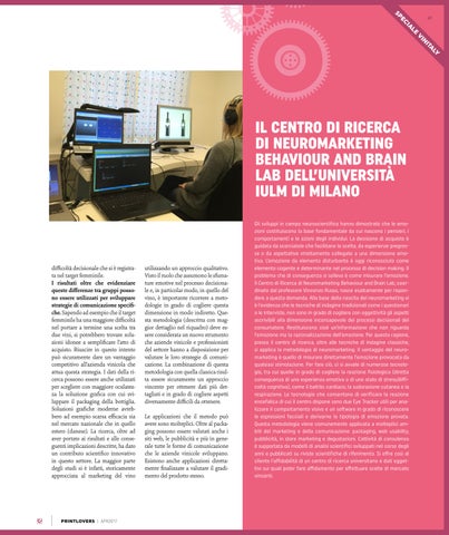 IL CENTRO DI RICERCA DI NEUROMARKETING BEHAVIOUR AND BRAIN LAB DELL’UNIVERSITÀ IULM DI MILANO