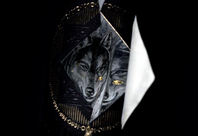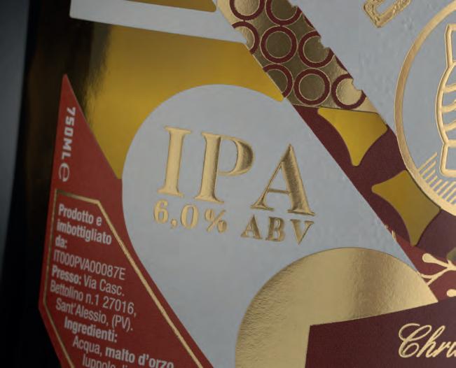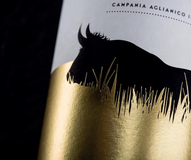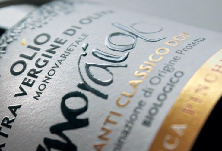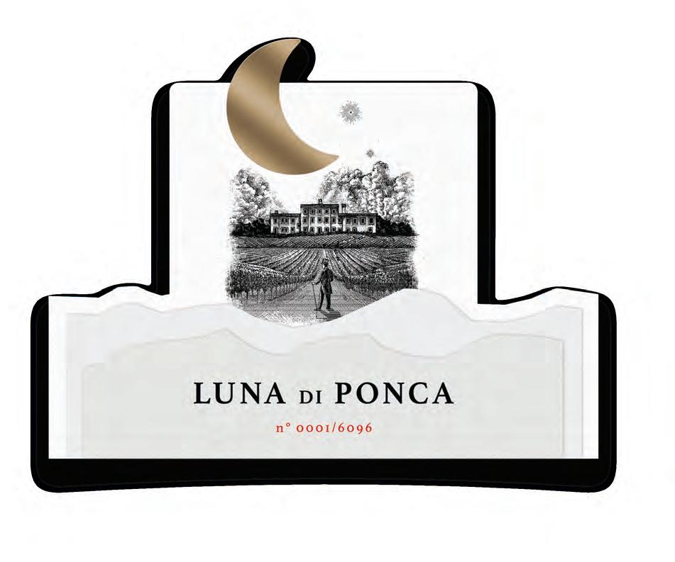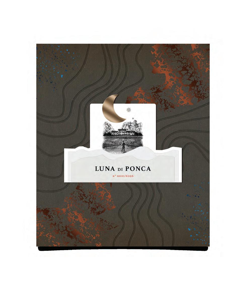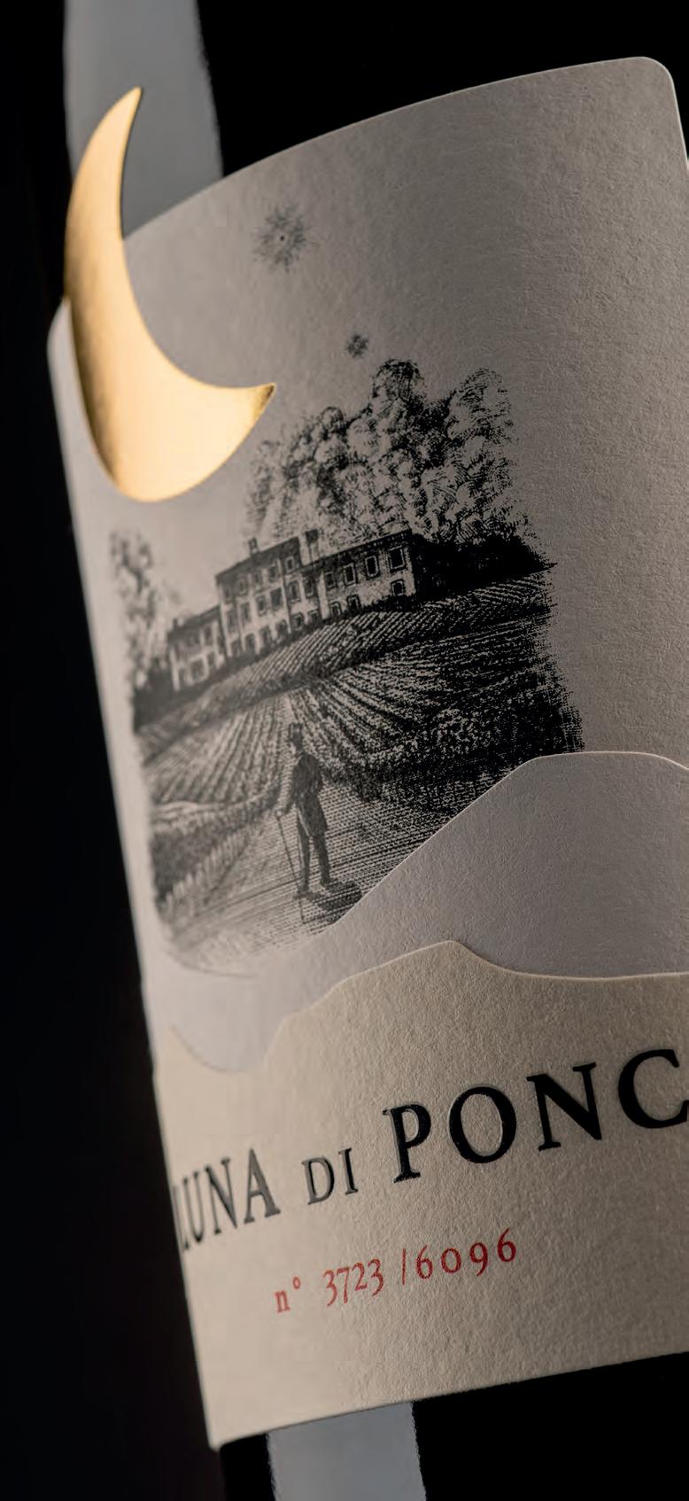 La mezza luna protagonista dell’etichetta è resa preziosa dall’oro stampato a caldo: il LUXOR® 220 è un oro classico e luminoso molto adatto a sottolineare l’eleganza evocativa dell’immagine centrale. L’etichetta è il culmine di un omaggio alla Ponca, un ecosistema molto ricco e variegato, qui richiamato dalle diverse soluzioni di nobilitazione.