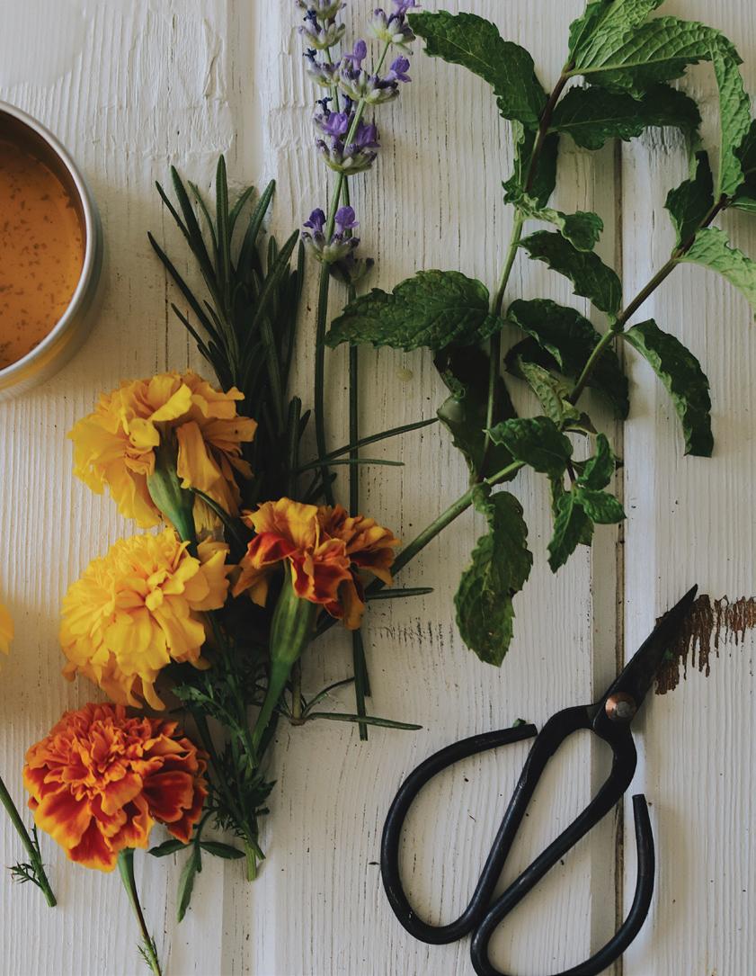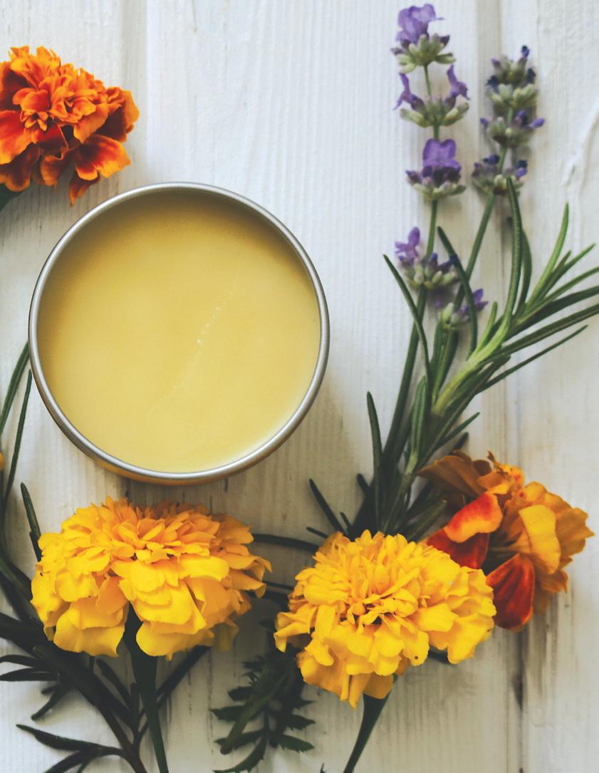 Calendula is a trusted herb used for many skincare problems: eczema, psoriasis, dermatitis, and more. Applied topically, it is soothing and safe on sensitive skin. Calendula is often used on children as well. It has wonderful medicinal properties that aid in healing scar tissue, speeding the recovery of wounds, and can even disinfect the wound site. You can easily grow calendula in your backyard or in a pot. It is often confused with marigolds; calendula is actually pot marigold or English marigold and is safe to eat. If you are growing French marigolds, which are most often planted in home gardens, they can be potentially dangerous to consume. Be careful and know which types of seeds you are planting. Peppermint is used in this recipe to soothe the skin and add a cooling effect. You will find it works well for its antifungal and antimicrobial properties. You can even use it on your feet! T