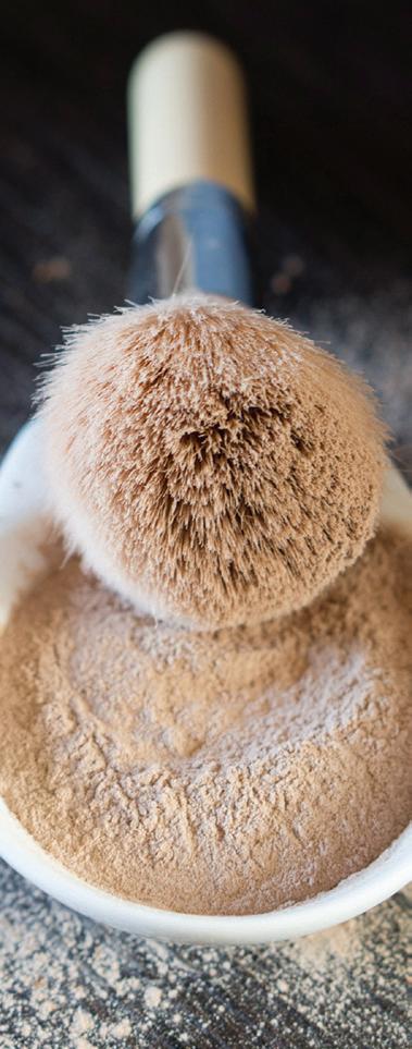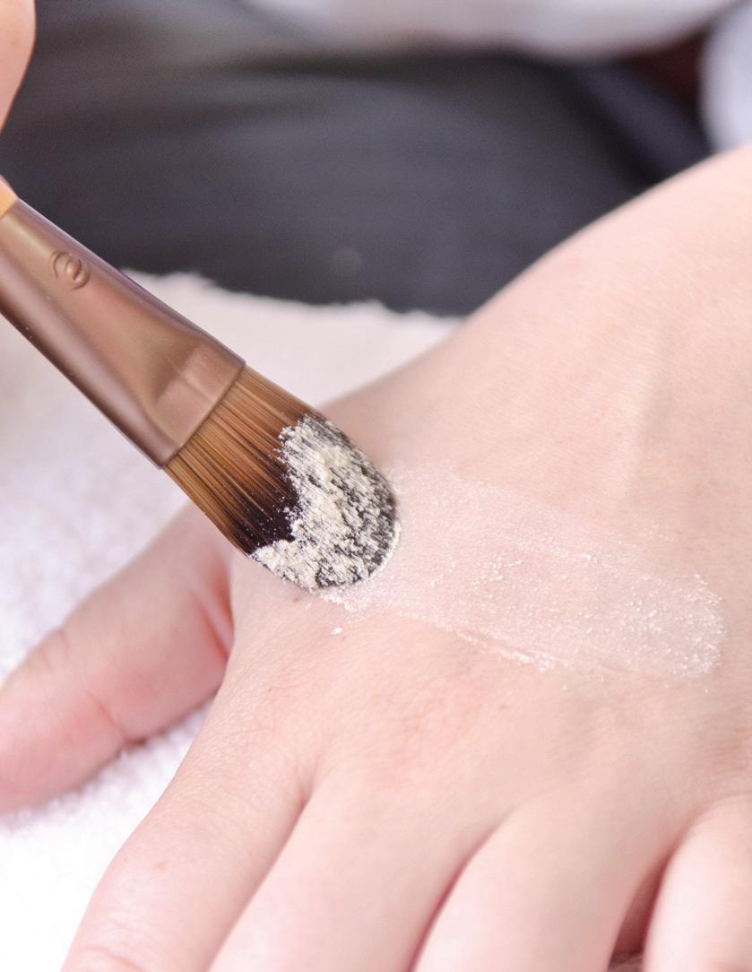 Add the arrowroot powder, bentonite clay, and first scoop of cocoa powder to a medium dish, and thoroughly mix until you have a consistent color. Follow with more cocoa powder as needed. Make sure to fully stir in all of the cocoa powder before adding more so you can check the consistency of the color. If you add a little too much, not to worry, you can simply add in more arrowroot powder and/or bentonite clay.