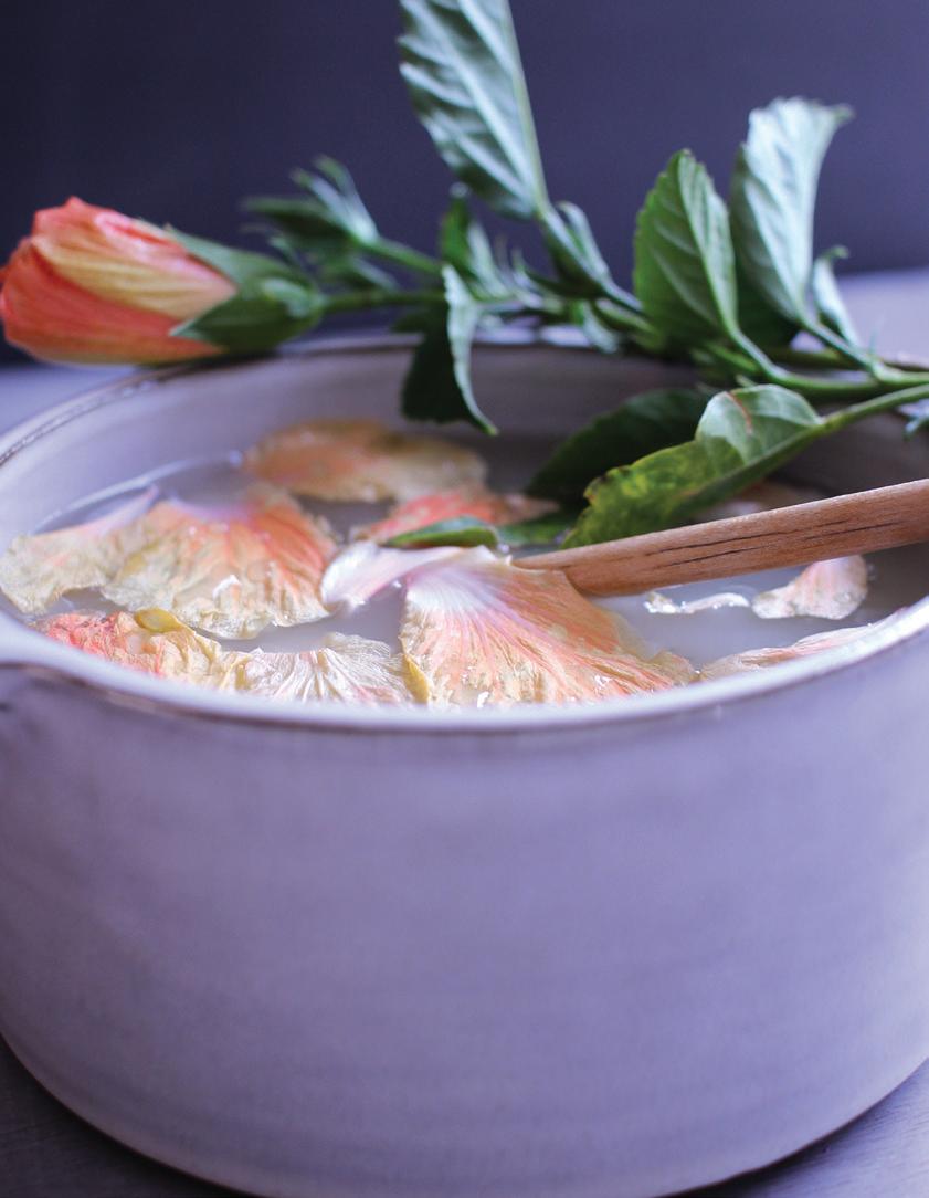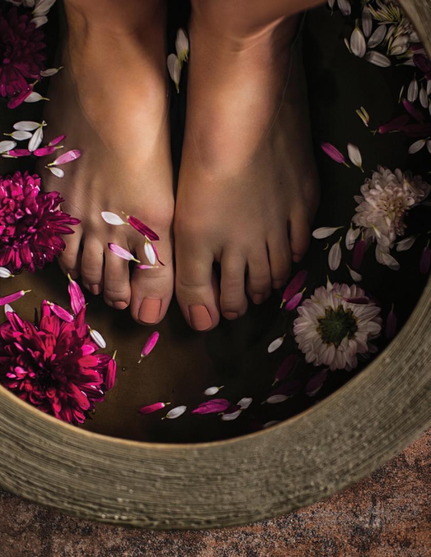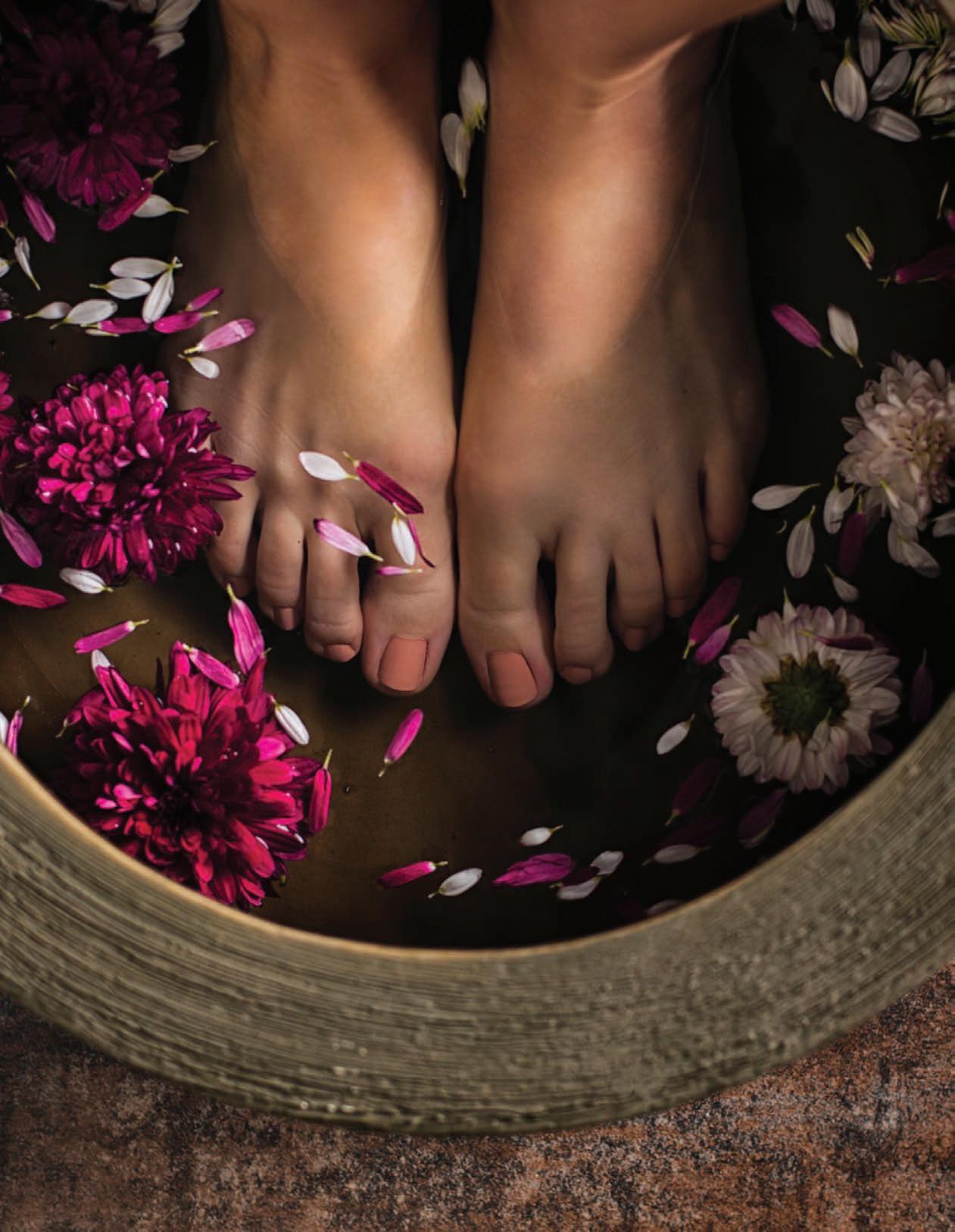 Bentonite clay has the ability to draw out toxins and bind itself to those toxins. Bentonite clay also has the added benefit of reducing inflammation, which makes it perfect for tired feet after a long day. Tea tree essential oil is an antiseptic and anti-fungal that helps rid your feet of the side effects of being enclosed in shoes. Fresh or dried flower petals add a mood-boosting elegance that cannot be rivaled — I personally keep hibiscus and roses in my garden, which I grow organically so I can add them to beauty recipes. As you move through life, take the time to nurture “you.”