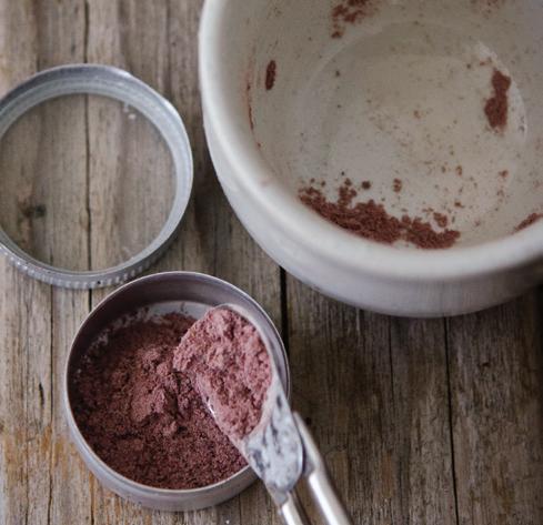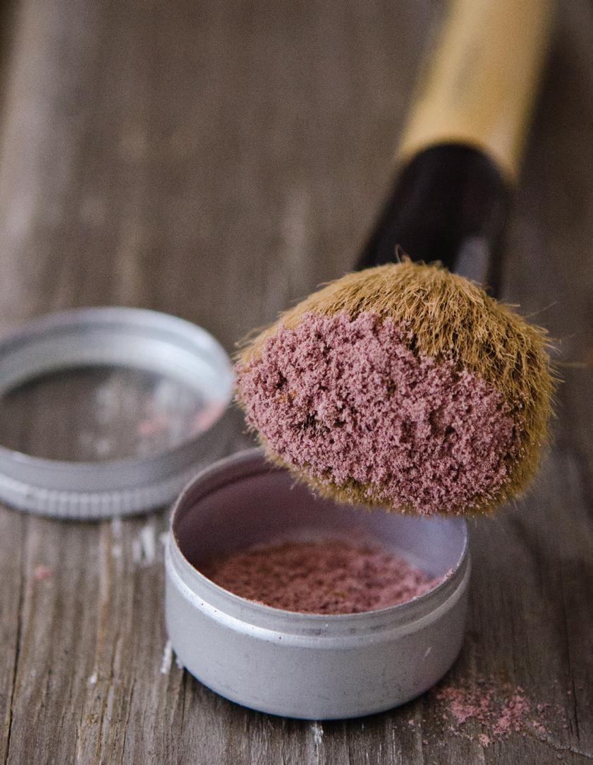 Begin by mixing together cornstarch and beetroot powder. Test this shade on your skin to see if it is to your liking. You can always add a little extra beetroot powder or cornstarch to adjust the color. You can also add cocoa powder to make a darker hue. Play around with the amount of each ingredient until the desired shade is reached. Place in a container with a lid. T