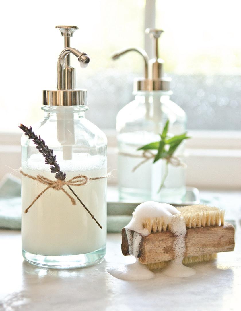• I found some 8-ounce glass pump bottles on Amazon that are perfect for my bathroom. And I am definitely going to be getting some small squeeze bottles to keep this in my purse!