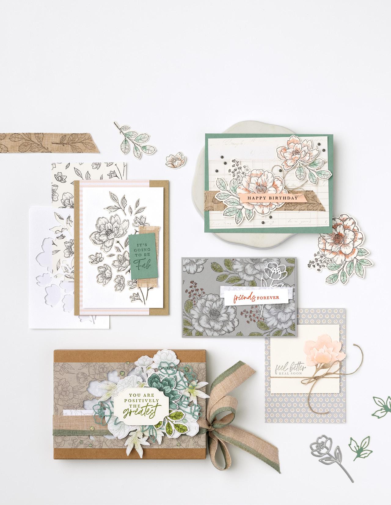 26 tampons en résine (blocs transparents suggérés : a, b, d, g) • Deux étapes • Inspiré par la lauréate du million en ventes Connie Stewart Coordonné aux poinçons Rien de mieux (p. 174)