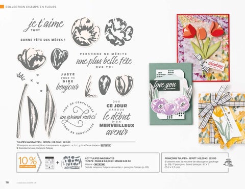 LOT TULIPES NAISSANTES 157679 | 70,00 € 63,00 € | £55.00 £49.50 Résine • Set de tampons Tulipes naissantes + poinçons Tulipes (p. 83)