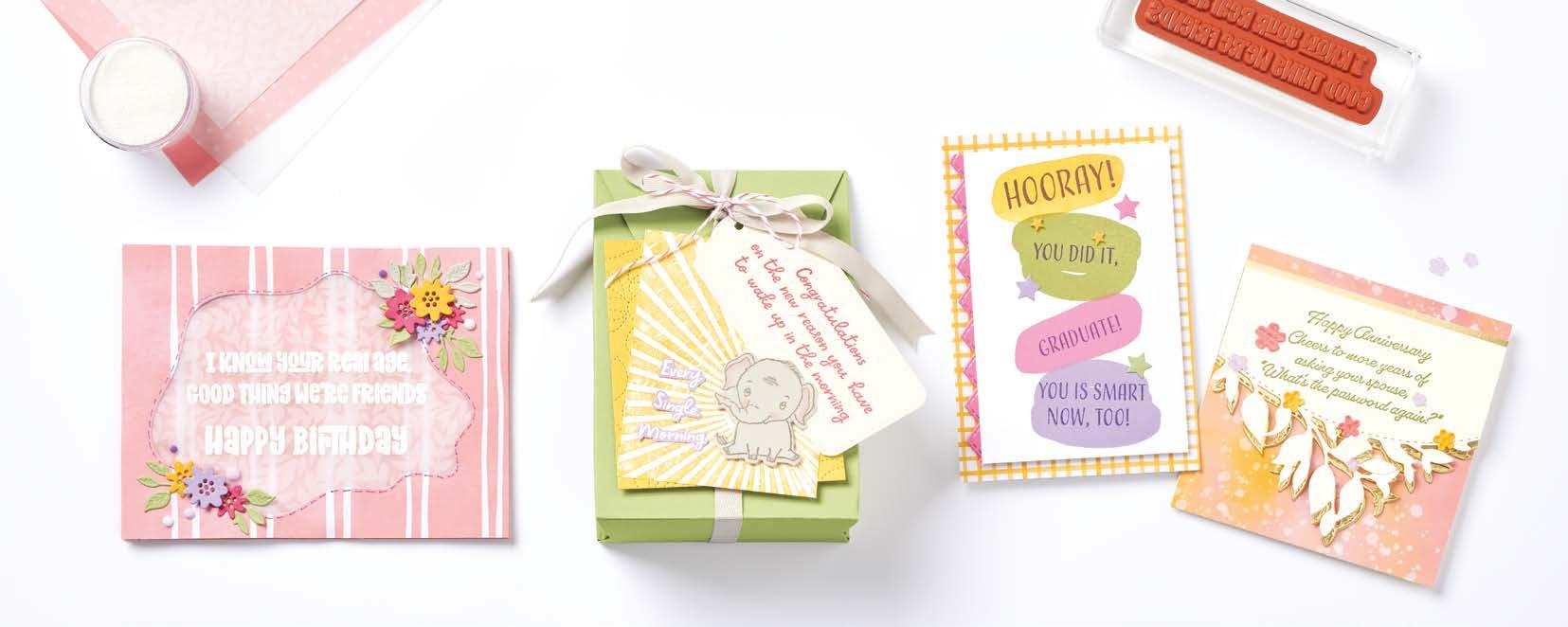 Wählen Sie aus leicht zu gestaltenden All-inclusive-Projekten für verschiedenste Anlässe, Jahreszeiten und Stile! Mit der Set-Produktlinie von Stampin’ Up! wird Kreativität zum Kinderspiel. Hier finden Sie alles: von Grußkarten über Wohndeko bis hin zu Geschenkverpackungen.