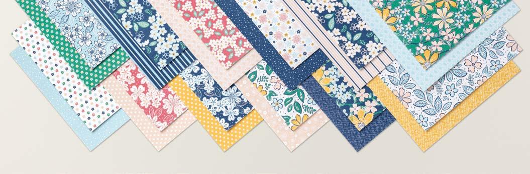 48 Blatt: je 4 Blatt in 12 doppelseitigen Designs. Lignin- und säurefrei. Bonbonrosa, Brombeermousse, Curry-Gelb, Nachtblau, Papageiengrün, Sommersorbet. Größere Abbildungen der Motive und Designs finden Sie auf stampinup.de , stampinup.at bzw. stampinup.be/de unter der jeweiligen Artikelnummer.