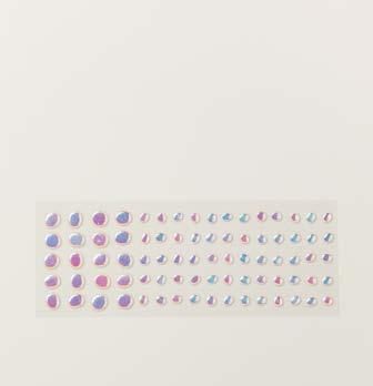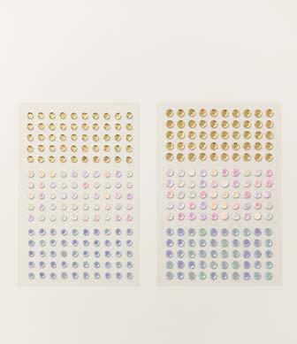 4. BUNT SCHIMMERNDE SCHMUCKSTEINE IN PASTELLTÖNEN • 160429 | 9,75 € | £7.50 90 selbstklebende Akzente: je 30 in 3 Farben. 4 mm, 6 mm. Calypso, Babyblau, Gold.