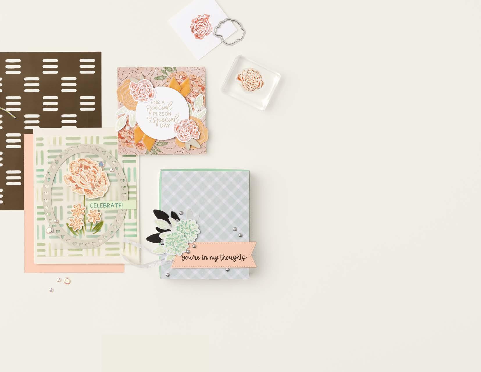 2. PRODUKTPAKET ETWAS BESONDERES 160427 | 62,00 € 55,75 € | £49.00 £44.00 Ablösbar • Stempelset Etwas Besonderes + Stanzformen Etwas Besonderes (S. 77)
