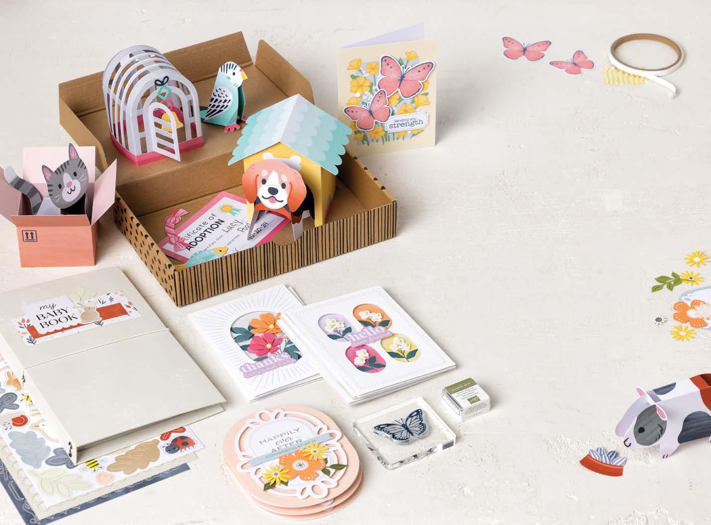 Vielfältige Projekte mit Accessoires und Papierelementen, die bastelbereit auf Sie warten! Zur Wahl stehen viele Arten von Projekten – da ist für jeden Anlass das passende Kreativset dabei.