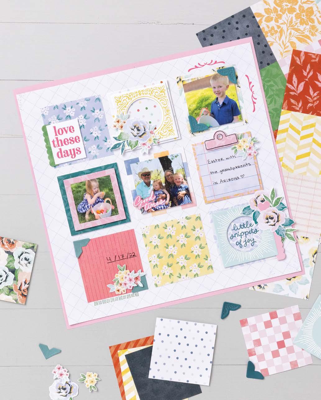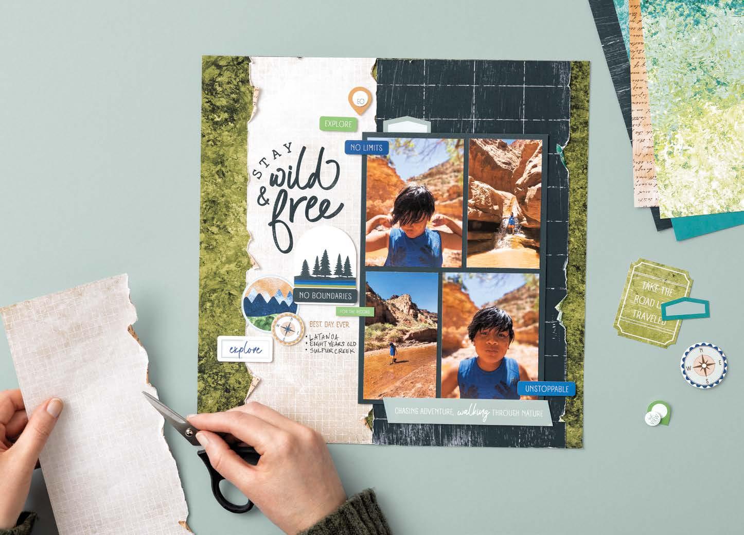 Ich hoffe, auch Ihnen eröffnen sich Möglichkeiten, die besonderen Momente in Ihrem Leben zu bewahren. Der wichtigste Schritt: Schaffen Sie Erinnerungen! Verwandeln Sie diese dann in etwas, das Sie in den Händen halten können – zum Behalten oder Verschenken. Sie können mit einer Einzelseite anfangen oder aber ein Album in Minioder Vollgröße, einen Journaleintrag oder auch eine Fotokarte gestalten. Diese kleinen Schätze halten die Verbindung zu diesen Momenten noch lange wach.