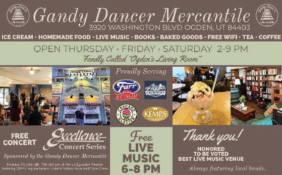 1. Gandy Dancer Mercantile 3920 Washington Blvd, Ogden, UT 84403, 801-605-3384 gandydancerutah.com/