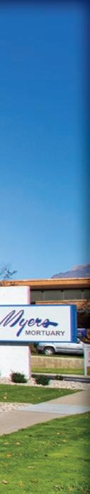 Spring 2023 G9 At Myers Mortuary & Cremation Services, we view every family we serve as a member of our own. myers-mortuary.com Funeral Directors That Feel Like Family Call us today to learn about the options and benefits of pre-arranging your final wishes.