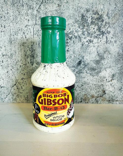 A bottle of Big Bob Gibson Original White sauce is displayed in New York.