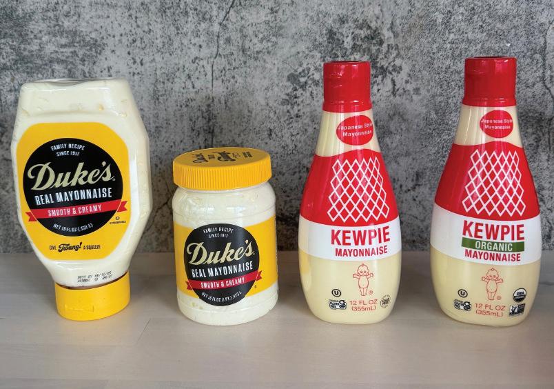 This image shows specialty condiments Duke’s Mayo, a century-old Southern classic, left, and Japanese Kewpie mayo.