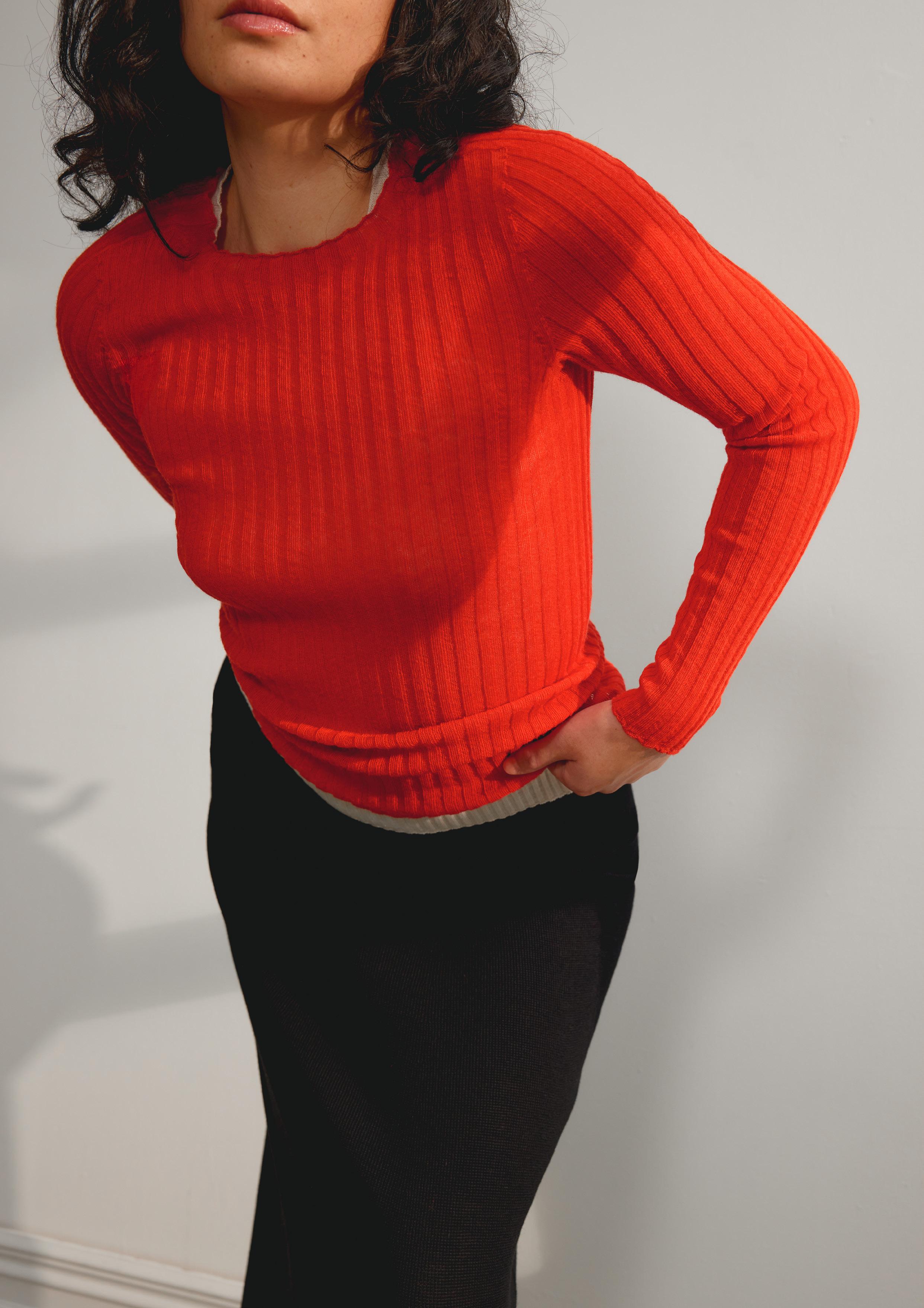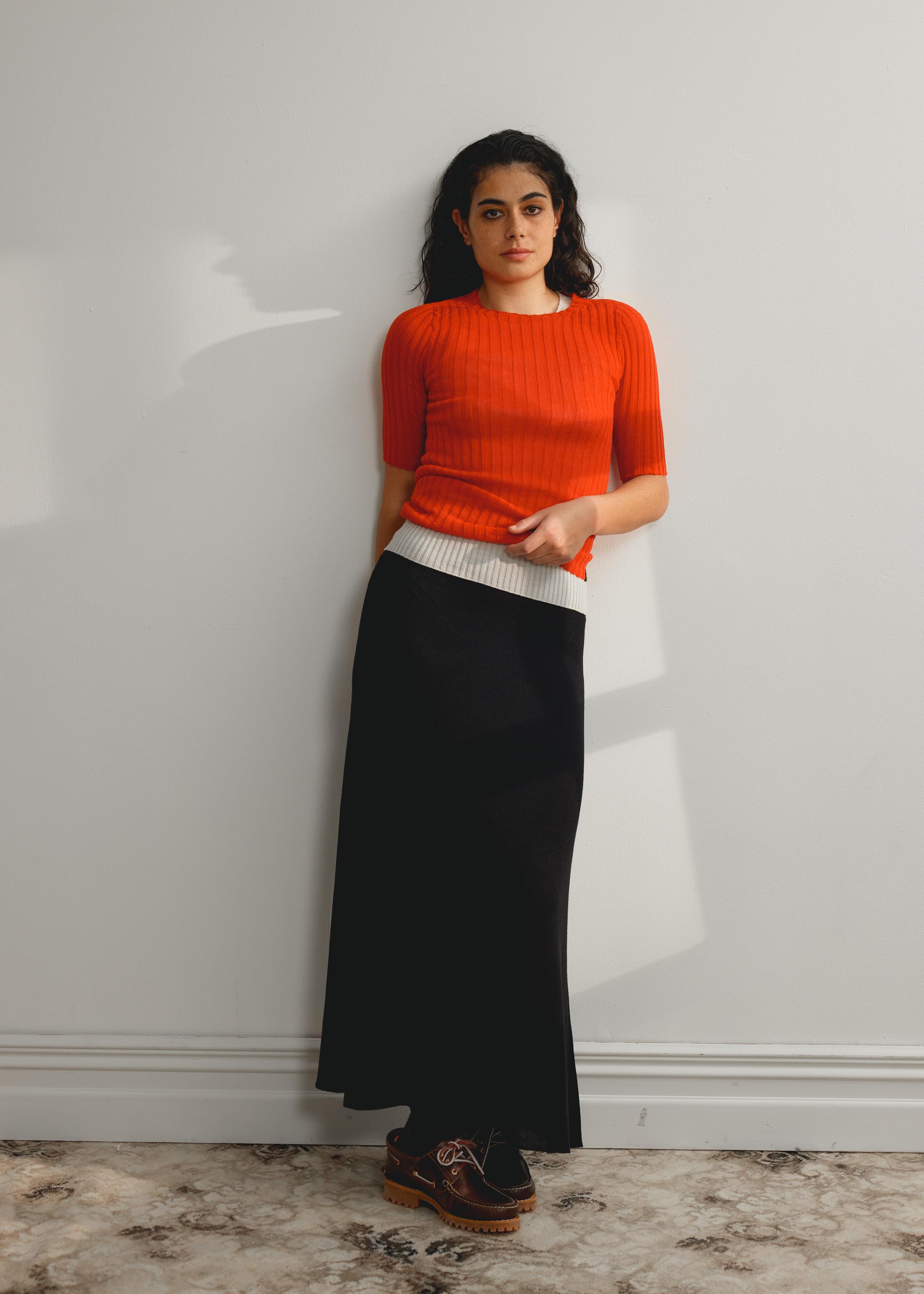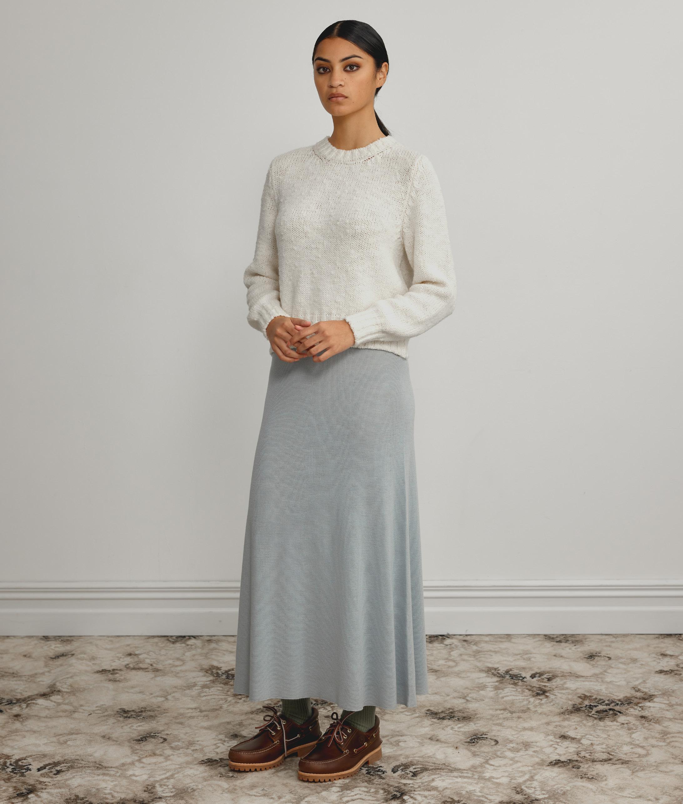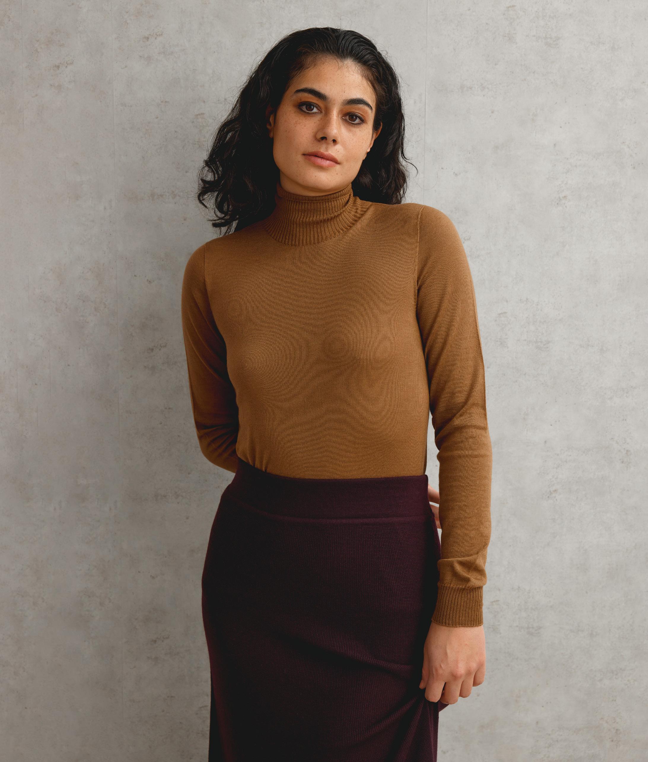 SI3179 merino skivvy / walnut SI3240 merino flared skirt / fig
