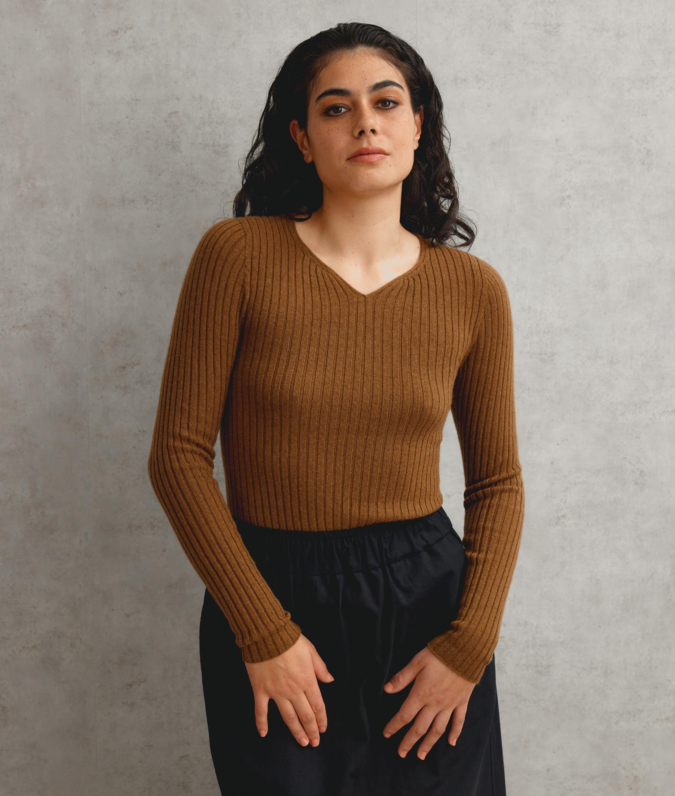 SI2141 cashmere rib sweater / chestnut SI3216 cotton broadcloth skirt / black