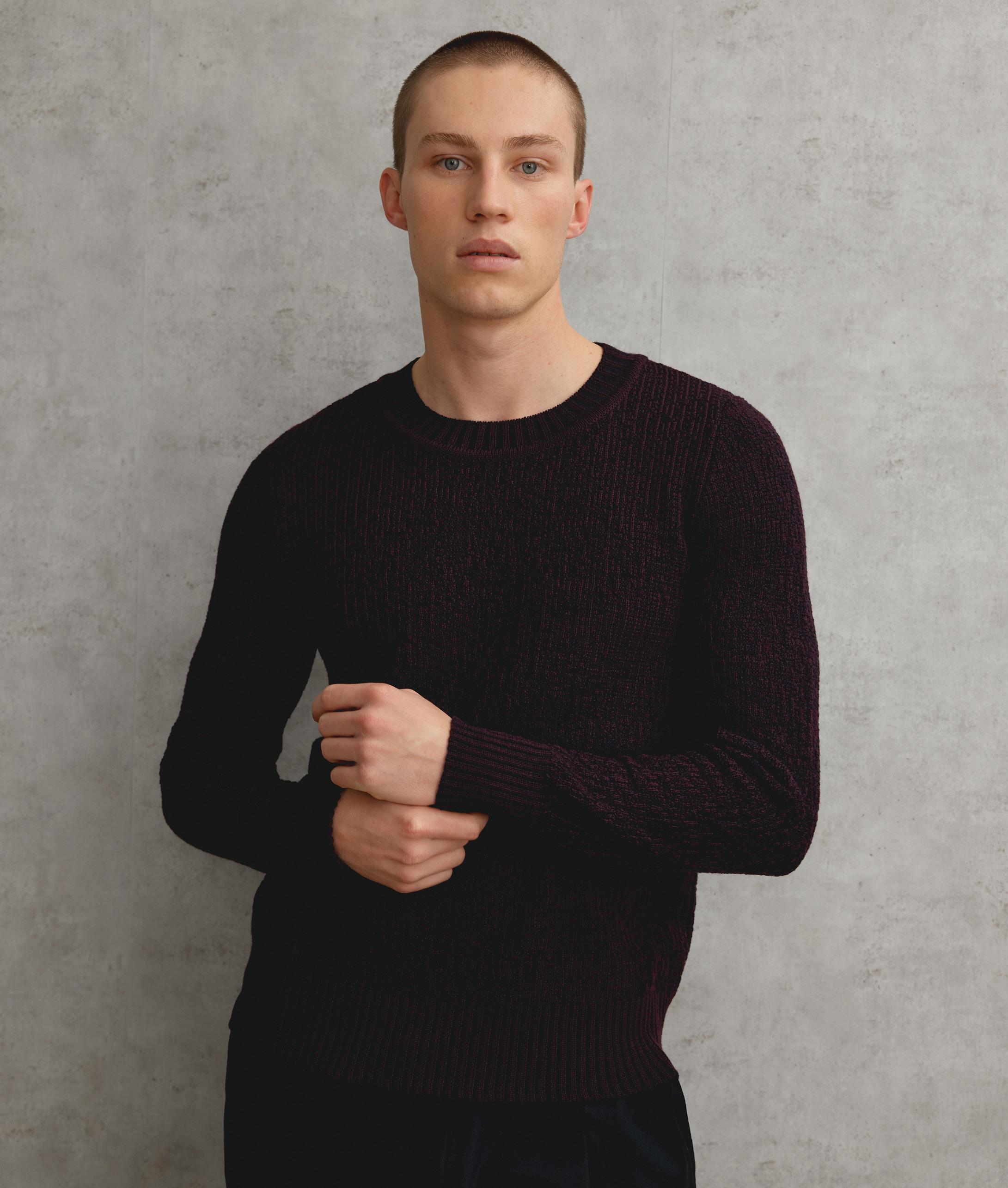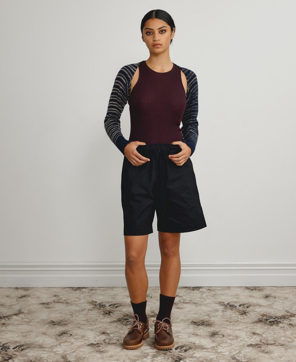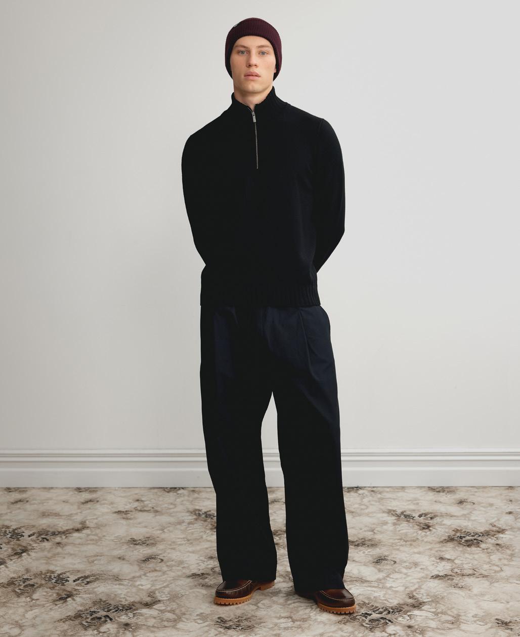 SI3244 merino universal slub sweater / navy/fig SI3219 cotton broadcloth universal trouser / black