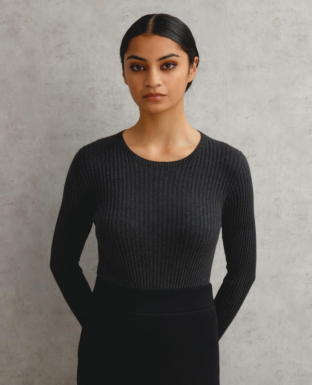 merino is richly coloured in seasonal shades of fig, walnut, and powder, complemented by the continued use of celadon merino from the spring summer 2024.