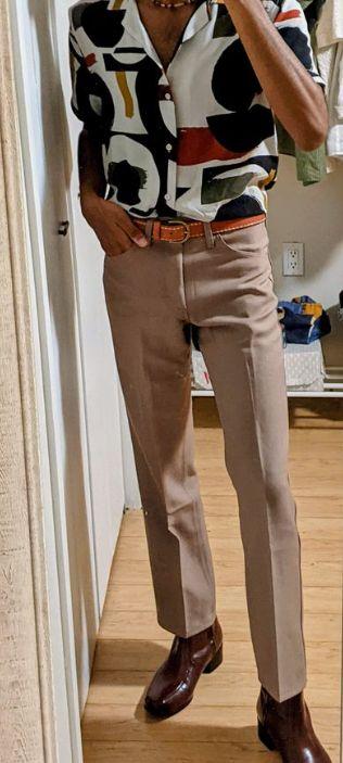 Don’t wear t-shirt fabrics or bulky sweaters. Avoid bottoms resembling cargo, leggings, palazzo, or other casual styles.