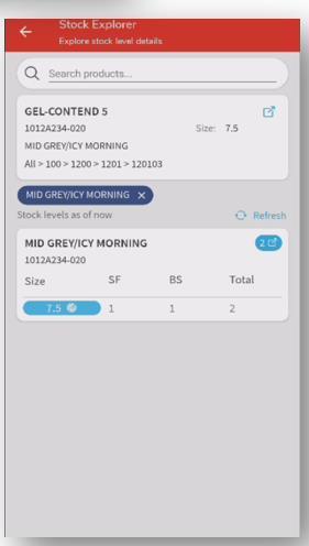 Once a SKU is entered a stock level breakdown will populate by location.