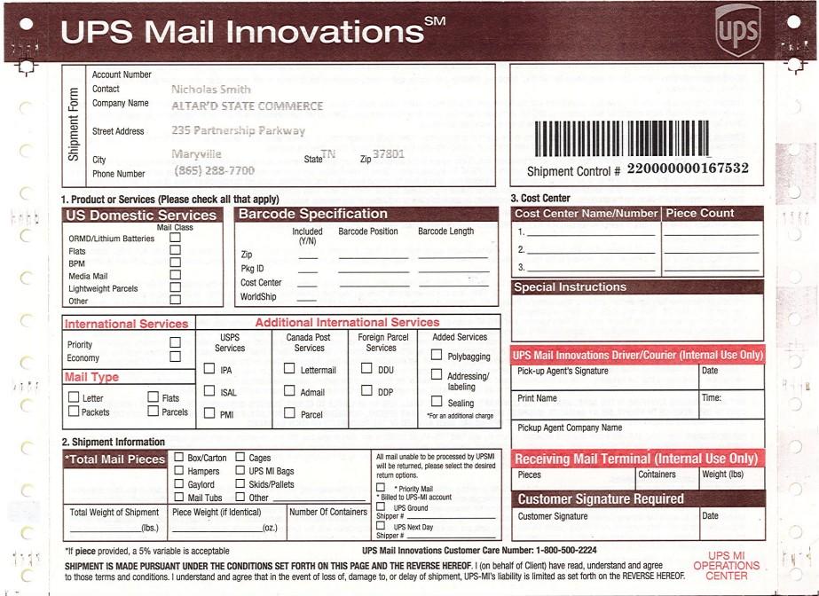 Step 6 Complete Mail Innovations Form It is important to fill out a Mail Innovations form every time you ship a bag. Follow these steps to complete the form: 1. Sign and date 2. Put the top page in the yellow bag Once the form is completed, place the top page inside the yellow bag. You may keep the yellow copy for your store records. Step 1 29