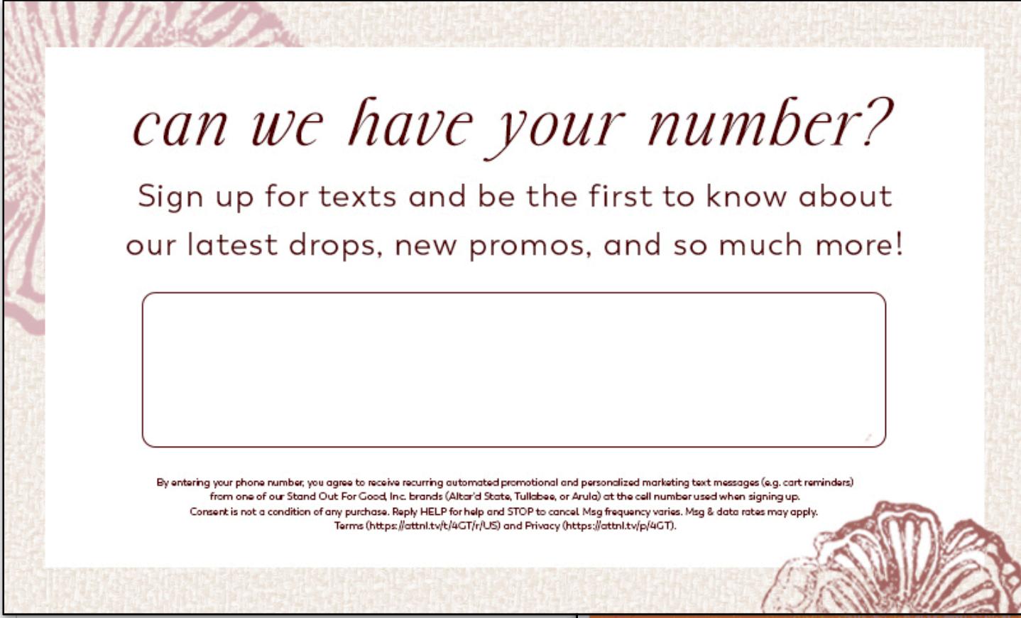 Ask the guest if she wants to sign up to receive texts from us. If yes, ask her to enter on the pinpad, otherwise ask her to press the red X button."
