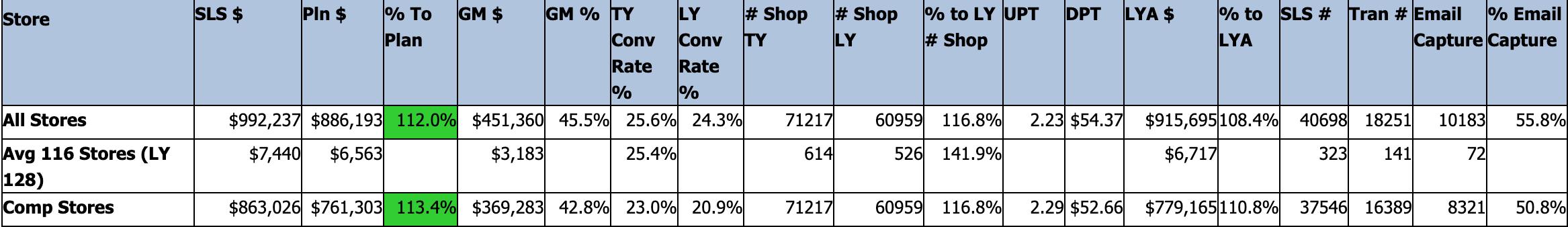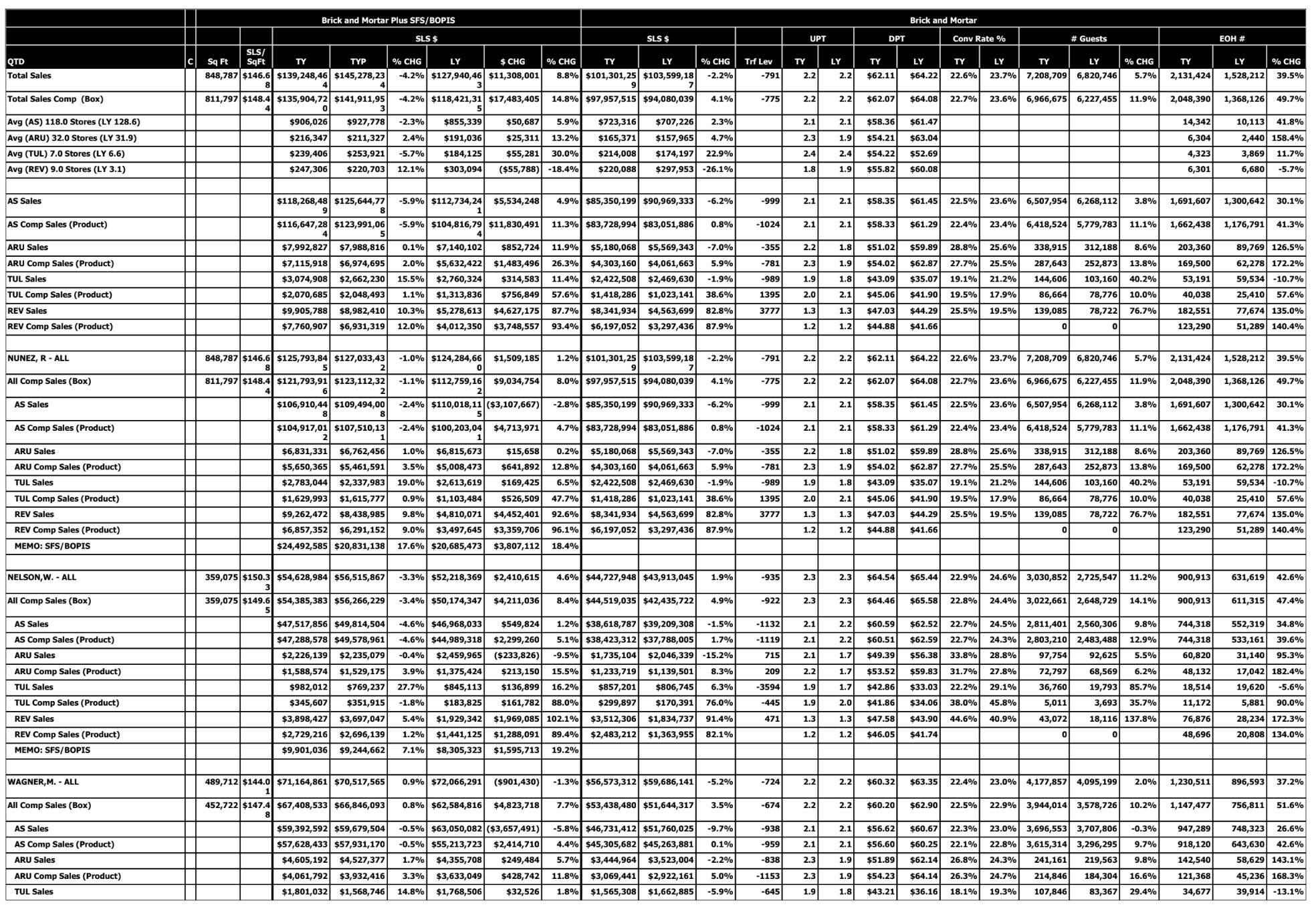 Leverage: Isthedifferencebetweenthisyearssalescompversusthisyearstrafficcomp. Ifyouareupinsalesthisyearanddownintraffic,thatwouldbeapositiveleverage.Ifyou aredowninsalesandupintraffic,thatwouldbeanegativeleverage.Itisallabout convertingthetrafficthatcomesintoyourdoor.Let’susetheHSRbelowtofigureupthe trafficleverage.Wewillusethe%toLYshopcolumnandthe%toLYAcolumn.Subtract the%LYAfromthe%LYshop116.8-110.8=6.Thisnumberwillnowgettransformedinto abasisnumberbymultiplyingtheanswerby100.Inthiscase6X100=negative600 leverage.Iftheresultswereswitchedandthesaleswerehigherthanthetrafficitwould equalapositiveleverage.
