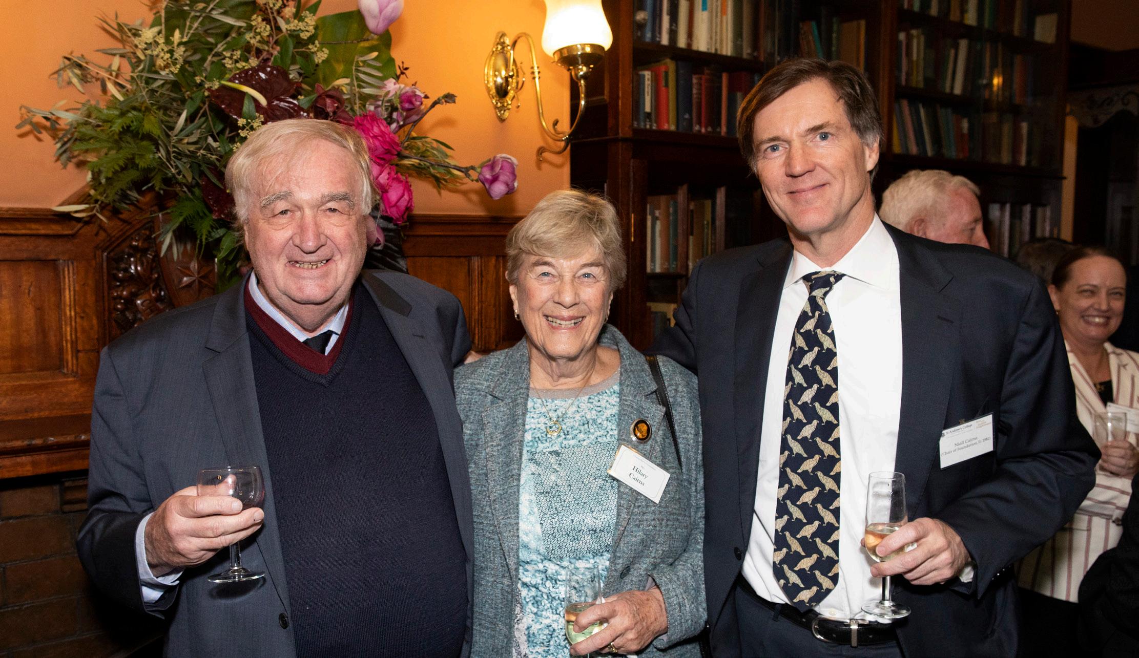 Opposite: L-R: Hugh, Hilary and Niall Cairns at a College event in 2019.