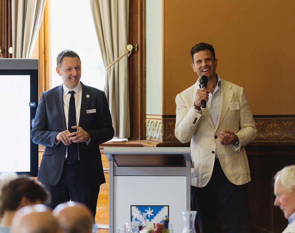 Daniel with Chair of Council Jeremy Hoffmann (Fr 2003) giving an update to guests at 1867 Circle Lunch.