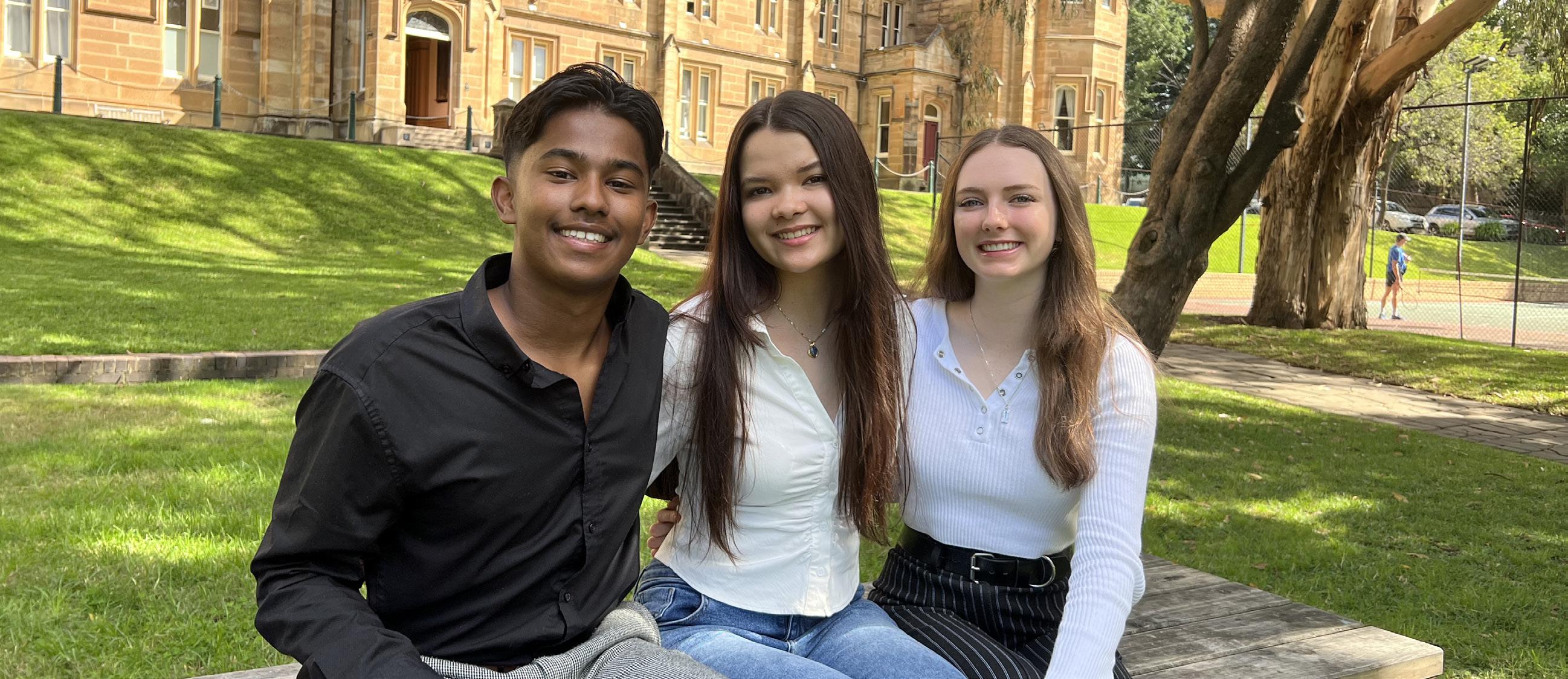 Mirren Fitzgerald (centre) is currently pursuing a Bachelor of Medical Science with a major in Neuroscience at the University of Sydney. Her interests include debating, swimming, and engaging in volunteering, leadership and community initiatives.