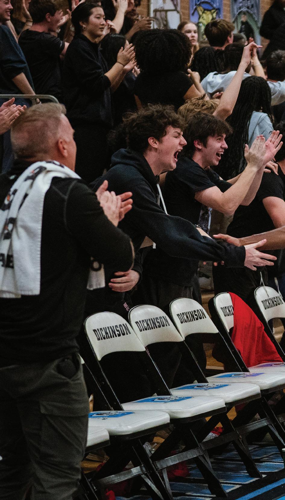 And the crowd goes wild for St. Andrew’s boys basketball after defeating Dickinson High School in Round 1 of the state basketball tournament on February 25. A regular-season-ending five-game hot streak sent the 13-and-6 Saints to the tourney as the No. 17 seed. They ultimately fell to No. 1 Dover High in Round 2.