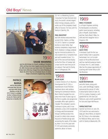 Old Boys’ News (3). He is a Marketing Systems Consultant for Vale (formerly Vale Inco), the world’s second largest nickel mining company, and he works out of the company’s head office in Toronto. Tim lives with his family in Oakville, ON.