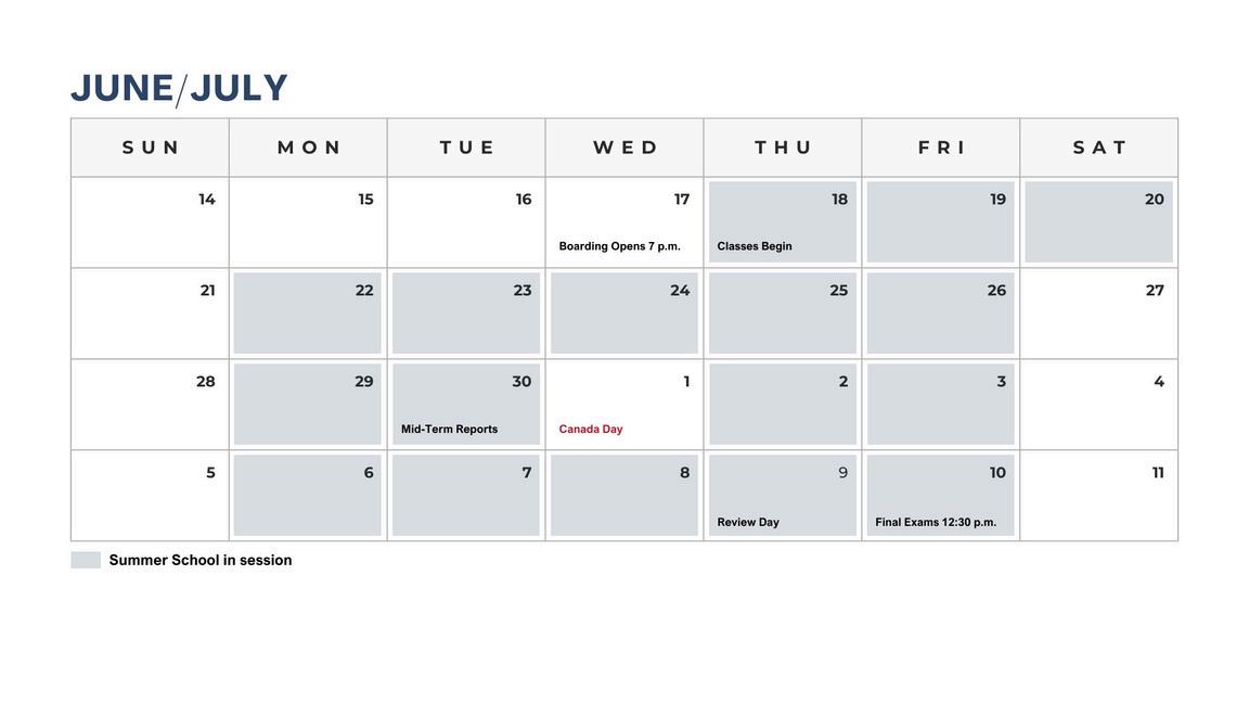 No classes on July 1, Canada Day; boarding remains open
