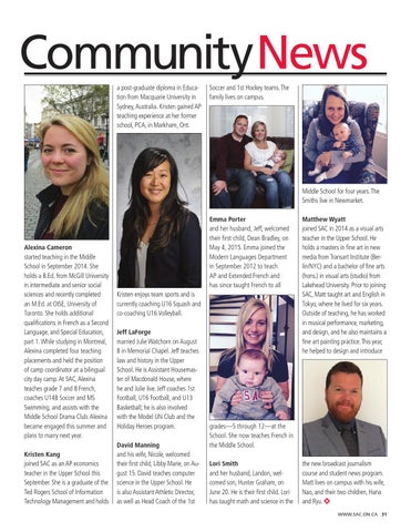 CommunityNews a post-graduate diploma in Education from Macquarie University in Sydney, Australia. Kristen gained AP teaching experience at her former school, PCA, in Markham, Ont.
