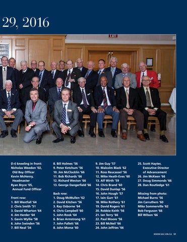 25. Scott Hayter, Executive Director of Advancement 26. Jim McKeen ’66 27. Doug Simmonds ’66 28. Dan Routledge ’61 Missing from photo: Michael Burns ‘56 Jim Carruthers ‘60 Mike Sommerville ‘62 Bob Ferguson ‘66 Bill Wilson ‘66