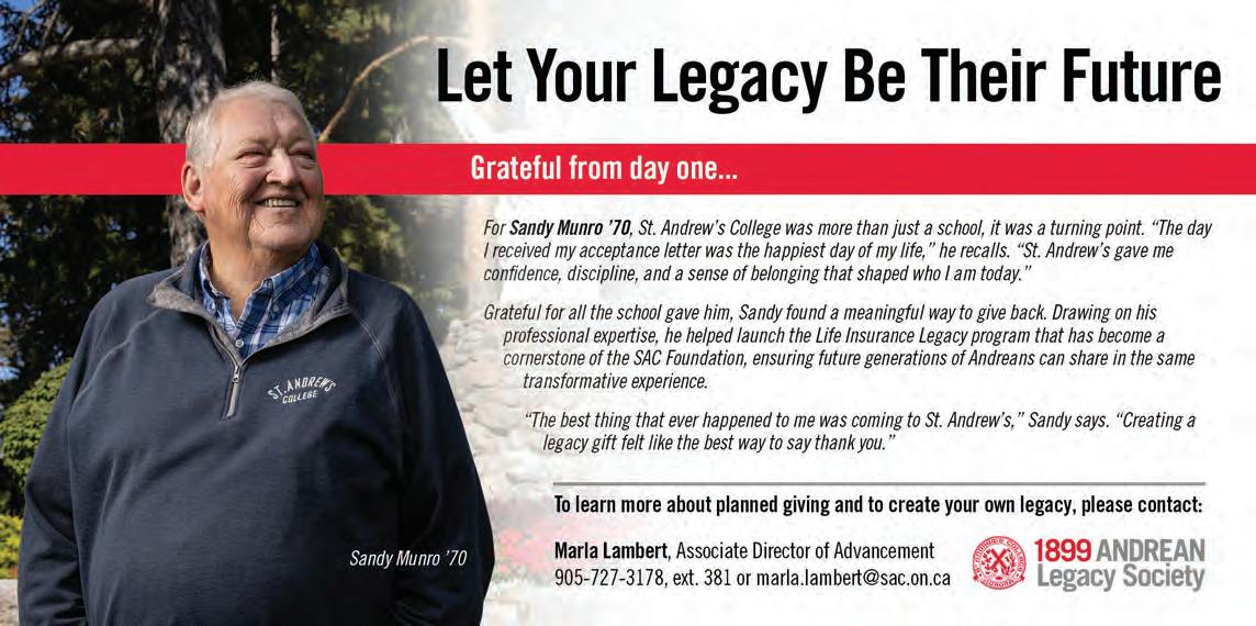 The Andrean staff and all those who work at St. Andrew’s College extend our sincere condolences to the families and friends of those mentioned in our obituary section. Please email us at theandrean@sac.on.ca if you wish to share news of an Old Boy who has passed away for inclusion in the next Andrean