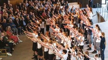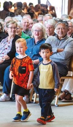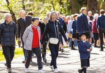 Kempthorne and Emily Watt (both Year 12), accompanied by William Ernest (2014). It was a special moment for Ian Stevenson (1955) when he watched his granddaughter Emily sing. Russell Kent (1959), who was celebrating his 70 Years On reunion, also played the organ for the group. After the performances, Charlie Gregg (Year 9) piped the group across the Turley Bridge for the traditional photo. The Strowan House dining room was full of energy and conversation as old friends caught up over a delicious meal. Greg Reynolds (1973 and OCA Executive member) welcomed the group back to
