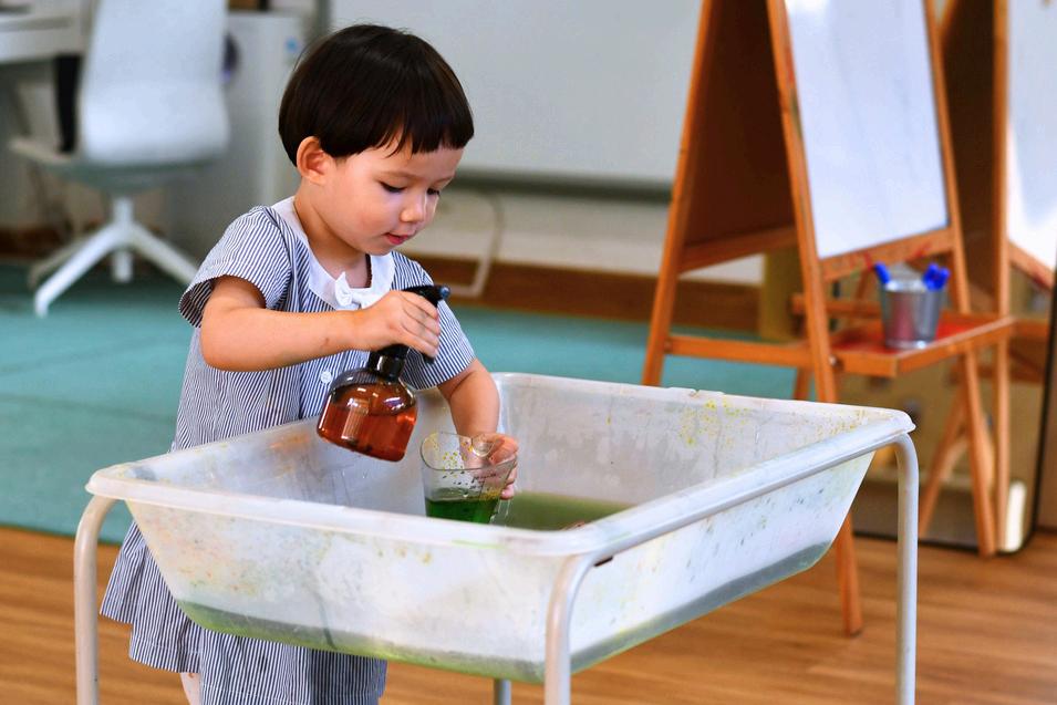 Our Early Years Centre has a pond where our classes spend dedicated time every week This is a highlight of every child’s time at S107! It is an opportunity for fun, play based exploration, where the children can build their water confidence, engage in ‘Loose Parts Play’, start to ask and answer scientific questions and experience mathematical concepts such as capacity The learning opportunities are endless and our teaching staff are always looking for ways to further enhance the experience. This can be somethingsimplelikeaddingbubblestothewater or to more complex enhancements such as pipes andtubingtodirectmovingwaterandexperience ‘causeandeffect.’