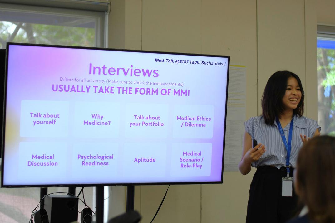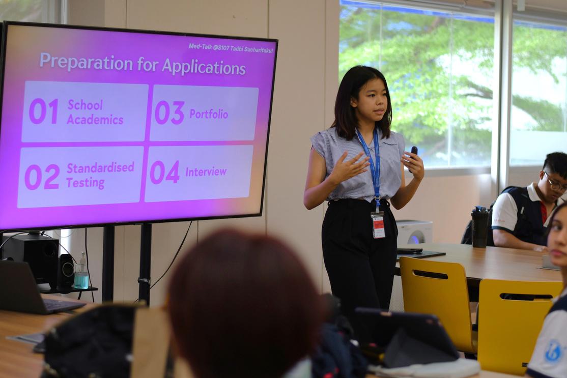 In an inspiring session for our high school students, on Monday 26th February, alumnus Tadhi Sucharitakul (Kati), currently a first-year medical student at Princess Srisavangavadhana College of Medicine (PCSM) in collaboration with University College London, debunked the common myth that medical school is all work and no play. Kati’s journey into medicine offers an exciting glimpse into the life of a med student, blending rigorous academics with enriching social and extracurricular activities.