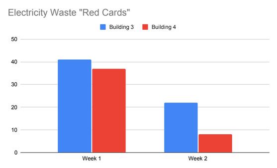 The Grow Green Committee, which has students in both primary and secondary, spent two weeks tracking electricity waste and giving "red cards" to classrooms that were wasting electricity. The teachers responded very well and worked hard to reduce electricity waste, especially building four, which saw a massive 80% reduction in red cards. Well done to the Grow Green Committee for their hard work!