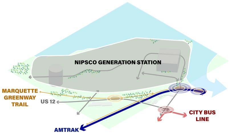 Learning that the NIPSCO site is in current closure and disarray in terms of what they are desiring to do with the site, we can see that there are city system adjacencies to the site. The need for connection from the Amtrak, another rail line amenity line that has potential to grow in the future is important to note when thinking of site generation.