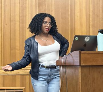 Pedagogy Fellow Edber Dzidz Yam contributes to a discussion at the May 2025 symposium.
