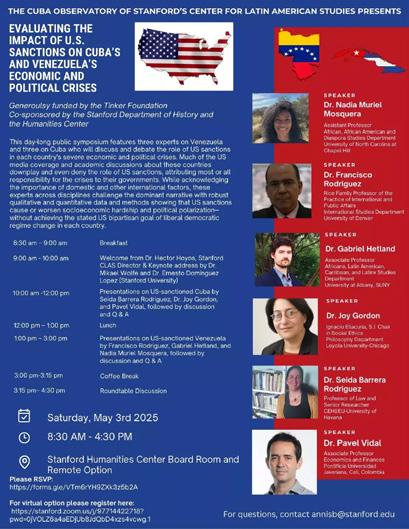 dissertation fellows a historian and an anthropologist report a high level of satisfaction with the program’s combination of research time, mentorship, and community engagement. One has secured an additional competitive fellowship from another Stanford unit; the other earned an assistant professorship at an Ivy League institution. Our incoming post-doctoral fellow (featured elsewhere in Enlace) brings cutting-edge political science training from UC Berkeley.