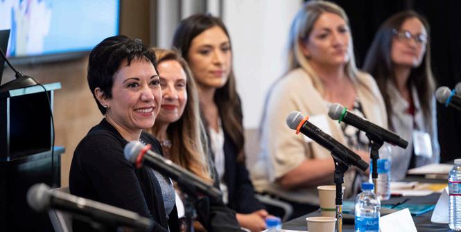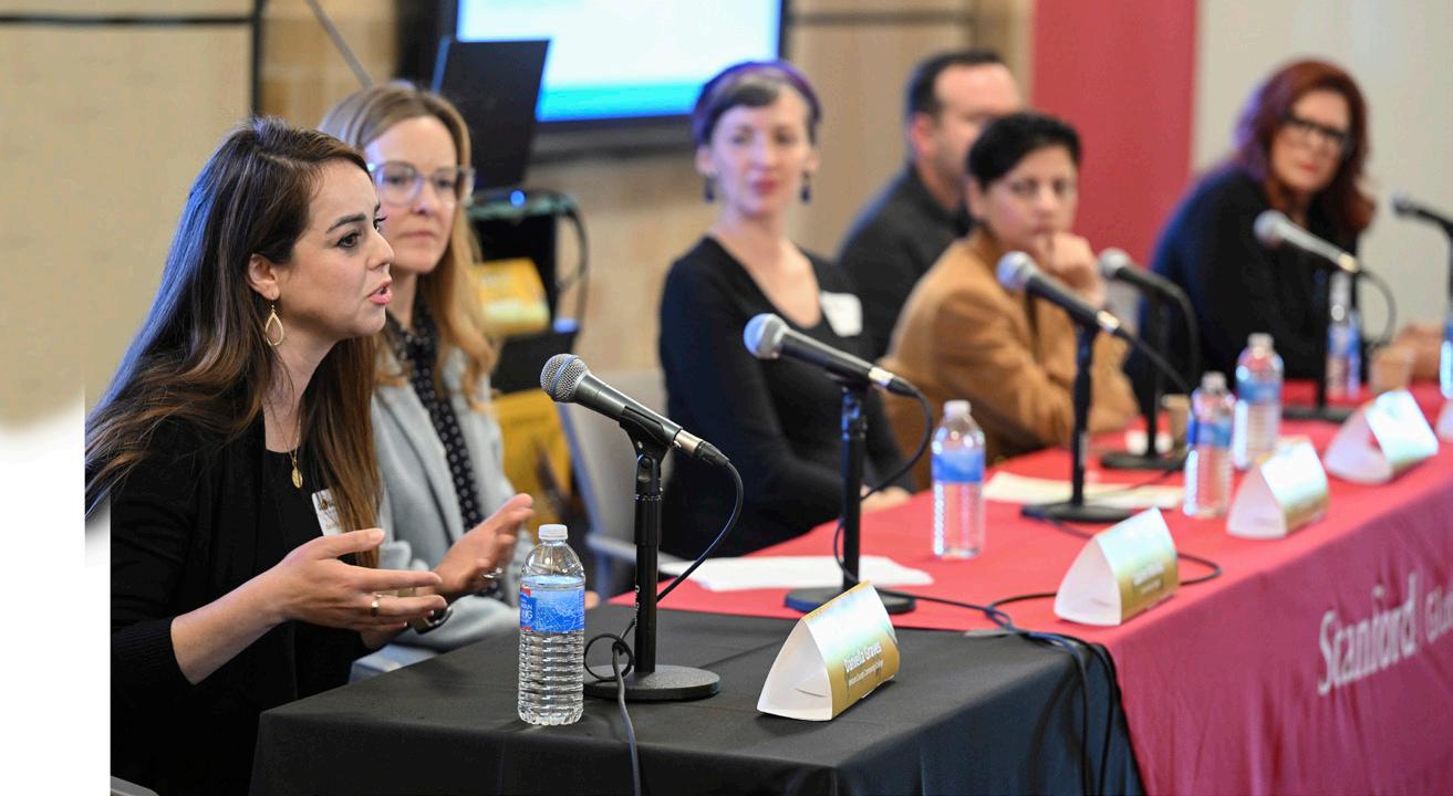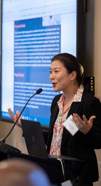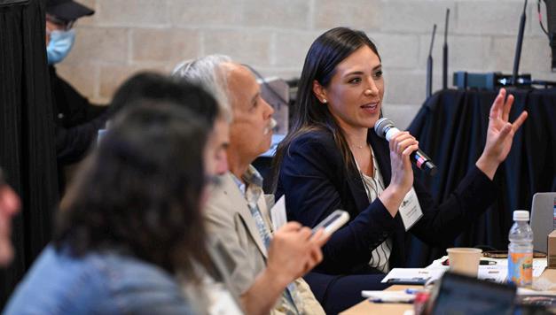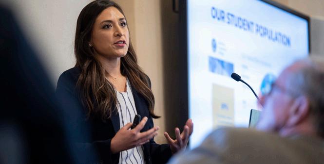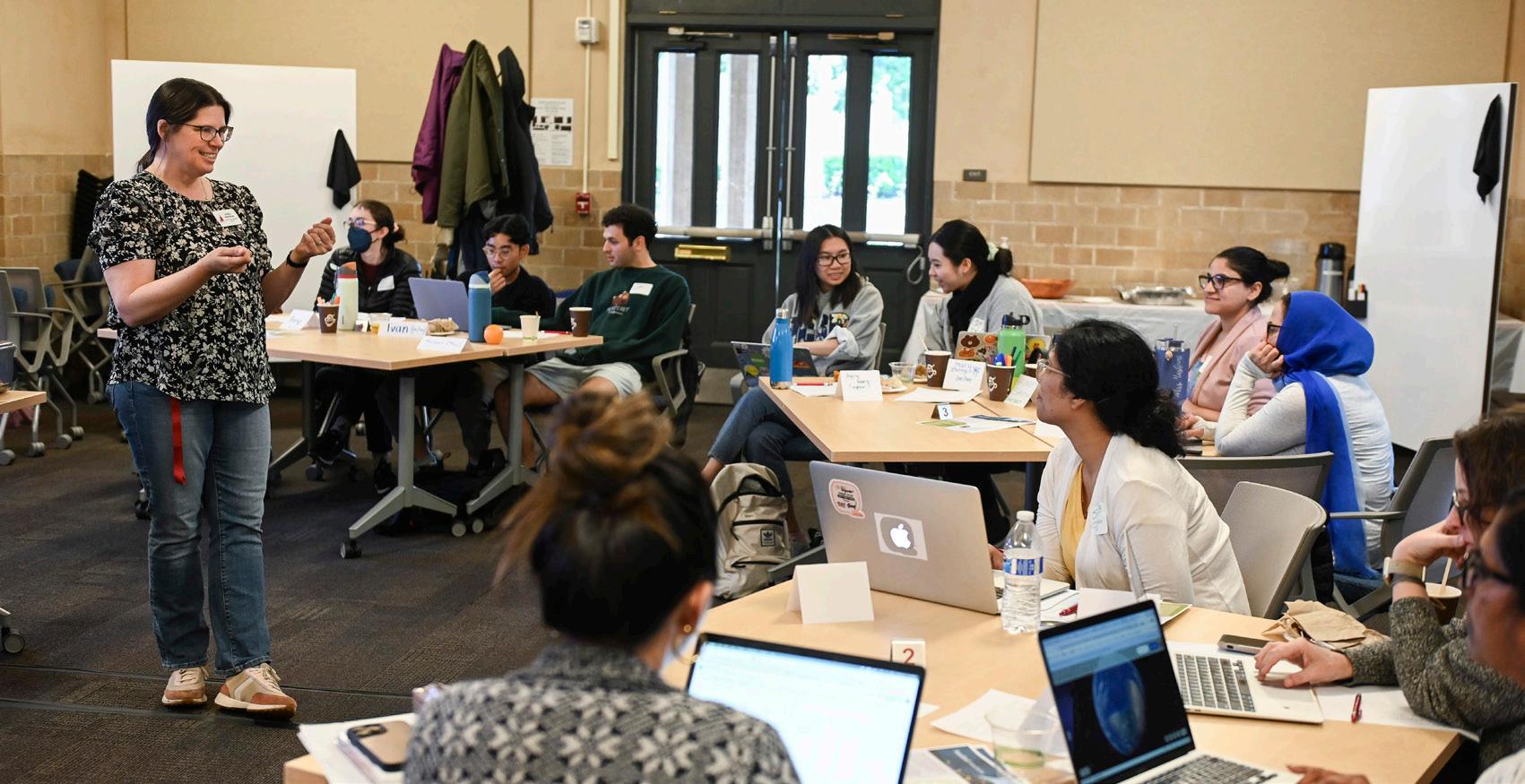 Right: EPIC fellow Daniella Graves, associate professor of sociology at Ventura County Community College, presents her final project at the 2024 EPIC Symposium. The annual symposium is attended by faculty and staff from universities and community colleges across the country. Photo credit: Rod Searcey.