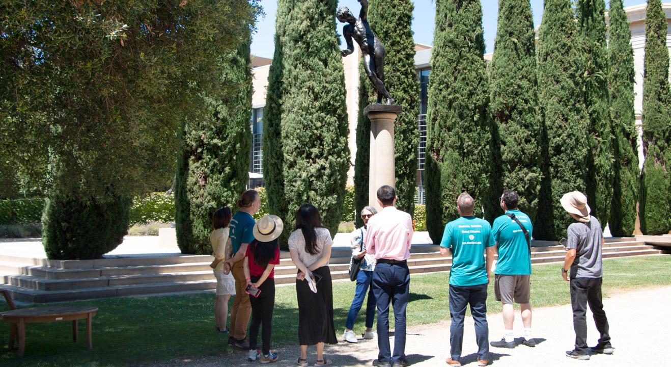 Left: Each year, community college faculty participating in EPIC fellowships begin their programs with a three-day workshop at Stanford, where they have an opportunity to explore key university resources, including the Hoover Institution Library and Archives, the David Rumsey Map Center, and the Cantor Arts Center (pictured).